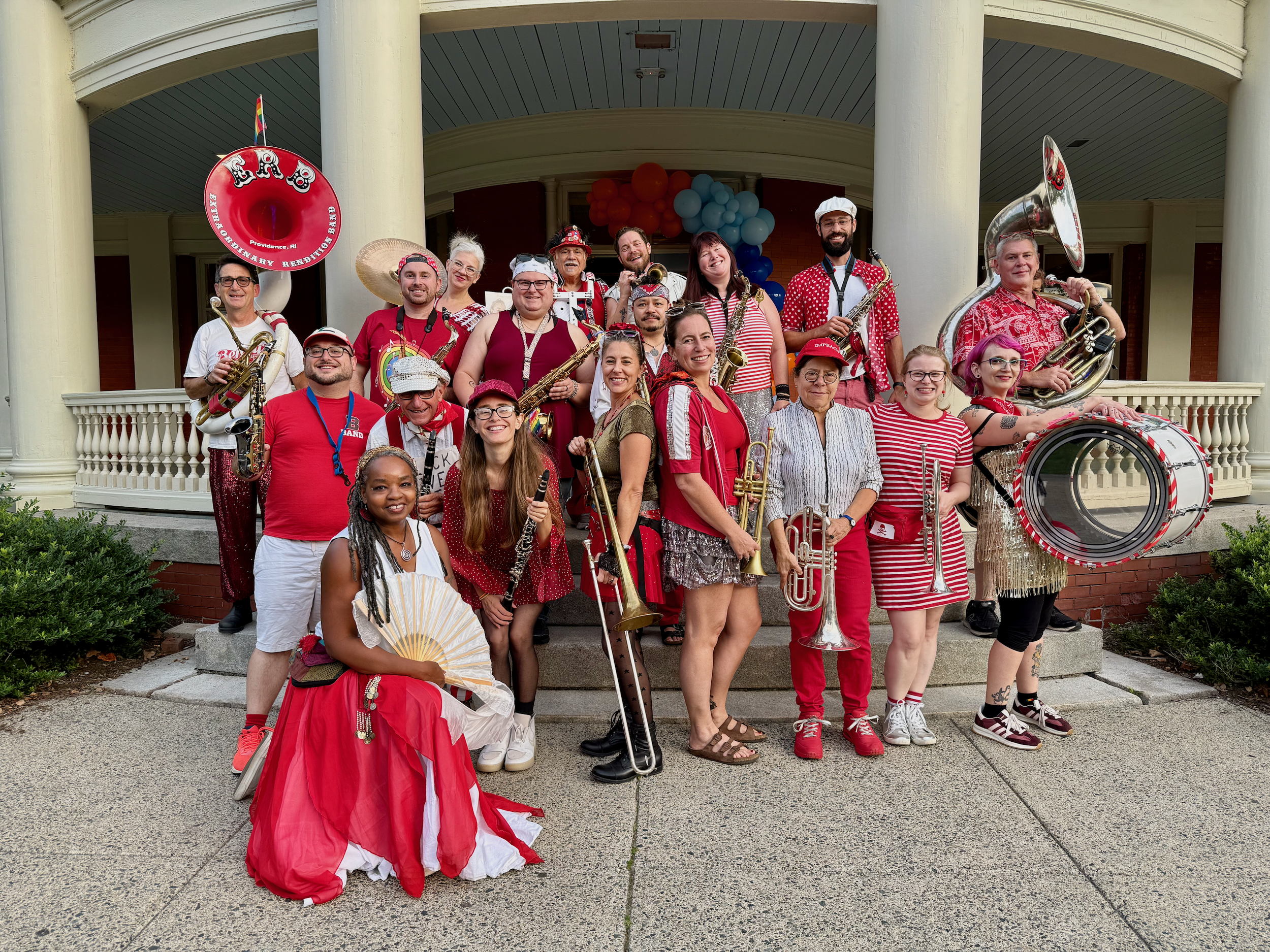 ERB welcomes musicians from all backgrounds and all levels to join us — and dancers and flag-wavers, too! We value silliness, gratuitous antics and fun for its own sake as much as musical skill. We ask all members to keep learning, and support each other’s growth in musicianship. Each member is accountable for attending practices, gigs, and contributing musically toward the joyous energy we create for ourselves and our audiences alike!