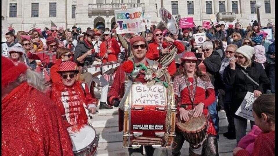 ERB is committed to social justice and deeply engaged in building a strong, inclusive, and joyous community. We play at events ranging from massive political demonstrations to small neighborhood parades, from citywide street festivals to local school celebrations. It is our belief that music brings energy, strength, and healing to struggles for collective liberation, and we challenge inequality, domination, and oppression. We play free, guerrilla-style, and in the streets whenever possible and try to uplift our community and make the experience of saving the world a bit more fun